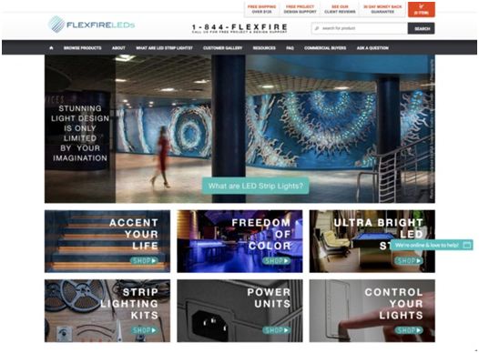 FlexFire LEDs 则是通过专注网站优化,吸引了迪斯尼、苹果、福特等品牌客户。FlexFire LEDs向谷歌和潜在客户提供大量的信息,让谷歌和潜在客户相信他们是行业的专家。