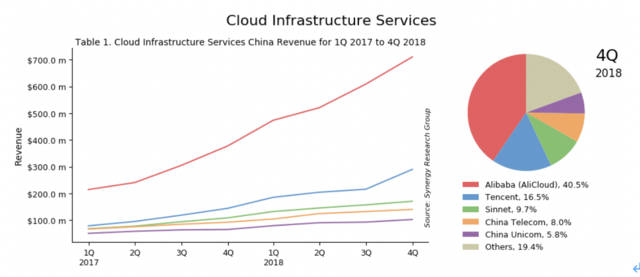 2017 Q1~2018 Q4中国云基础设施服务市场份额