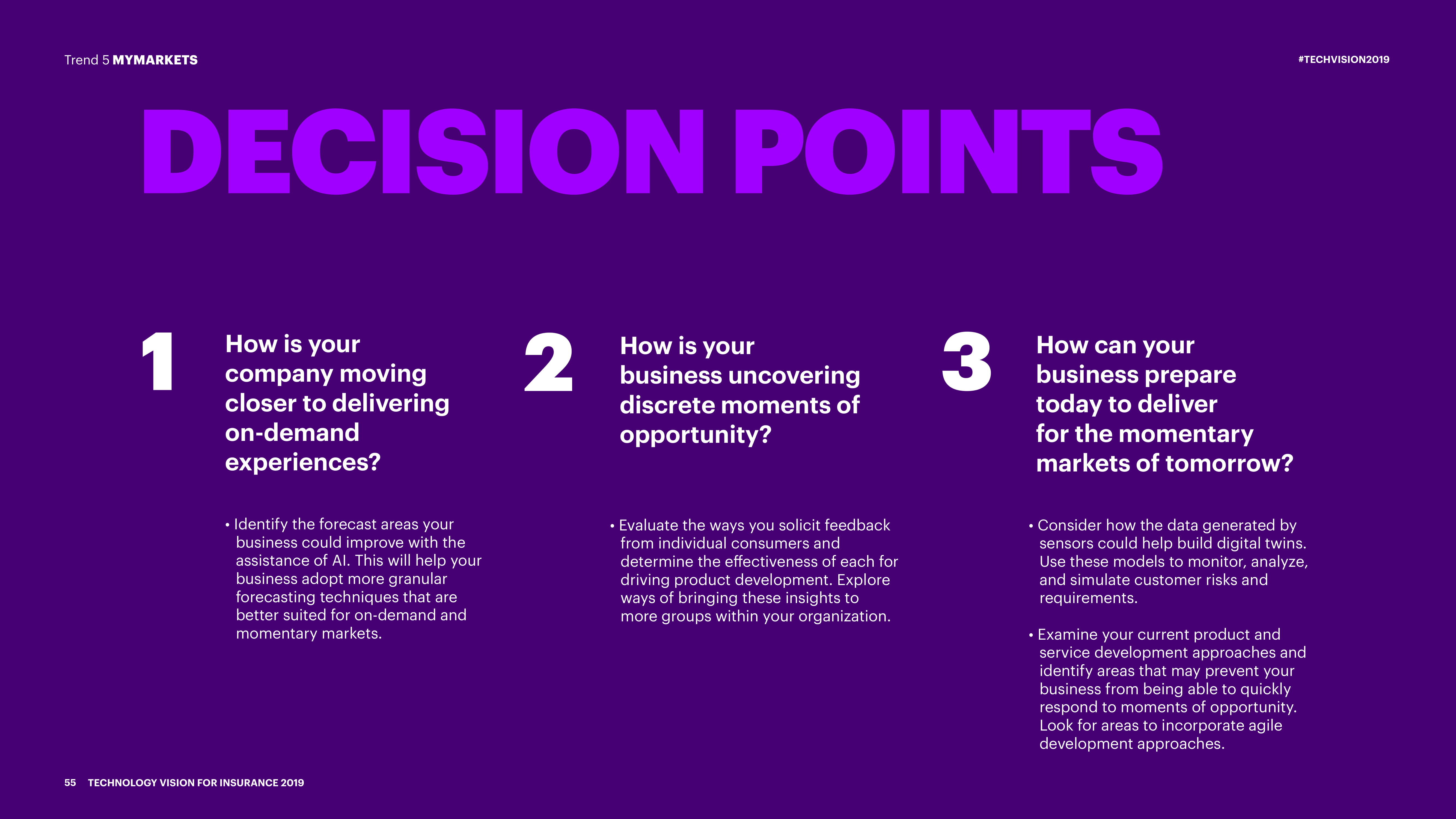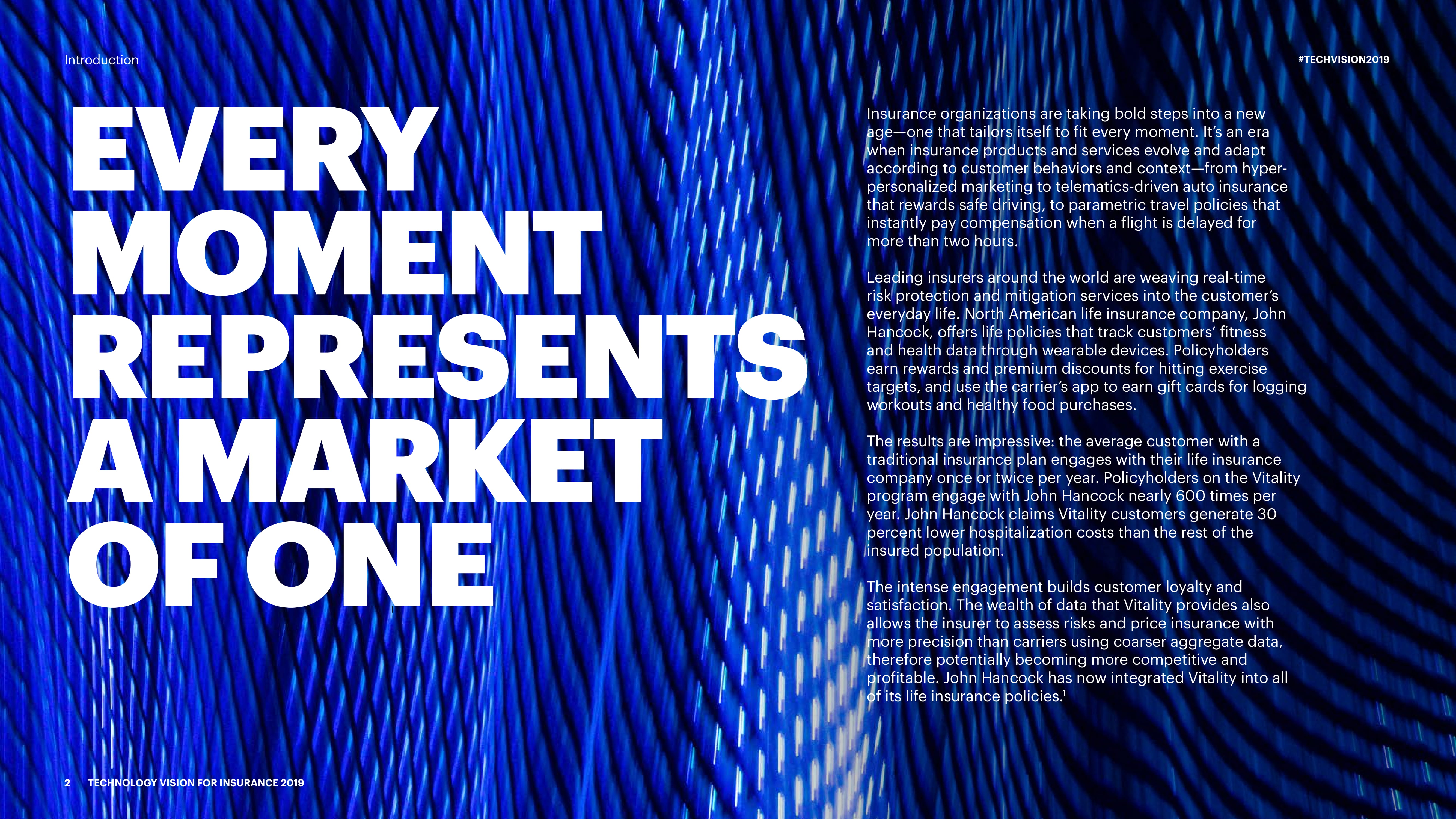 埃森哲发布了“2019年保险技术愿景”报告,保险业的下一大竞争优势将是利用“瞬时市场”(momentary markets)的能力,即根据客户独特的生活时刻量身定制并实时交付的个性化保单和服务。进入新的“后数字化”时代,成功的基础是掌握人工智能(AI)和其他新技术的能力。