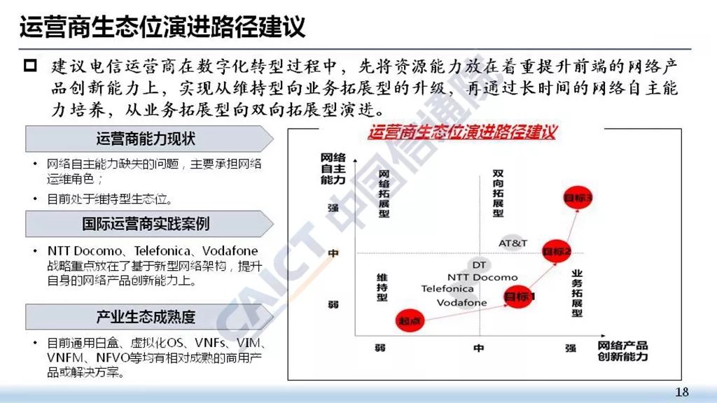 中国信通院:加快转型升级 推动电信业可持续发展 由工业和信息化部指导、中国通信学会主办、信通传媒和百卓网络承办的“2019年世界电信和信息社会日大会”于2019年5月16-17日在北京新世纪日航饭店召开。在17日下午的“创新推动产业升级高峰”分论坛上,中国信息通信研究院产业与规划研究所数字化管理与营销研究部主任郭顺义发表了题为“加快转型升级 推动电信业可持续发展”的主题演讲。 郭顺义在演讲中谈到,创新是推动电信业持续发展的核心动力,既包括技术创新,也包括业务和商业模式创新。随着内外部环境的变化,电信行业原有的增长模式已经难以为继,运营商正在探索实施数字化转型。重构网络架构是突破数字化转型瓶颈的核心。在新的网络架构下,运营商将处于一个新的产业生态体系之中,需要根据自身资源优势和战略方向,找到最适合的生态位和演进路径,并据此调整组织形态、运营流程和人力资源配置。 更多精彩,敬请阅读现场演讲PPT。 来自: 中国信息通信研究院CAICT 更多阅读:2023年5月广东省基础电信业运行情况2023年4月广东省基础电信业运行情况2018年8月广东省基础电信业运行情况2017年电信业值得关注的7大颠覆性技术2018年6月广东省基础电信业运行情况大数据:电信业的下一代生产力工信部:2013年上半年电信业统计分析工信部:2012年电信业非话音业务增17% 2024年5月广东省基础电信业运行情况广东省通信管理局 :2018年9月广东省基础电信业运行情况2016年中国电信业发展趋势:管道价值回归与重塑电信业变革:云计算带给运营商的五大益处德勤咨询:预计2012年电信业千元机用户将破5亿中国信通院:2023年6月国内增值电信业务许可情况报告中国信通院:2021年第三期国内手机产品通信特性与技术能力监测报告