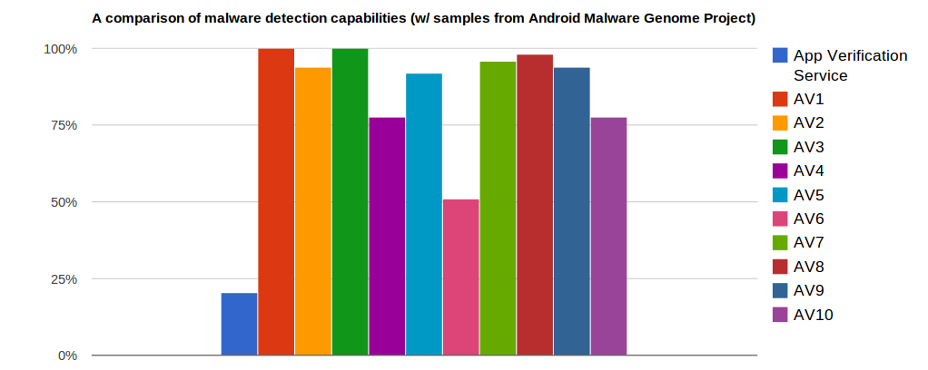 2012年2月,Google称会加强安卓系统的安全性。并推出了app 扫描工具针对上传到Google play的应用进行自动扫描。自此,Google采取了多个行动来提高安卓系统的安全。9月份收购了VirusTotal,在Android4.2中引入了可选的APP验证功能来让用户可以识别危险和潜在问题的apps。