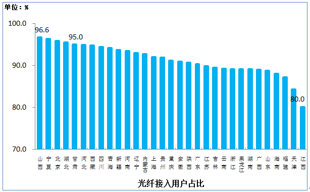 图8 光纤接入用户占比各省分布情况