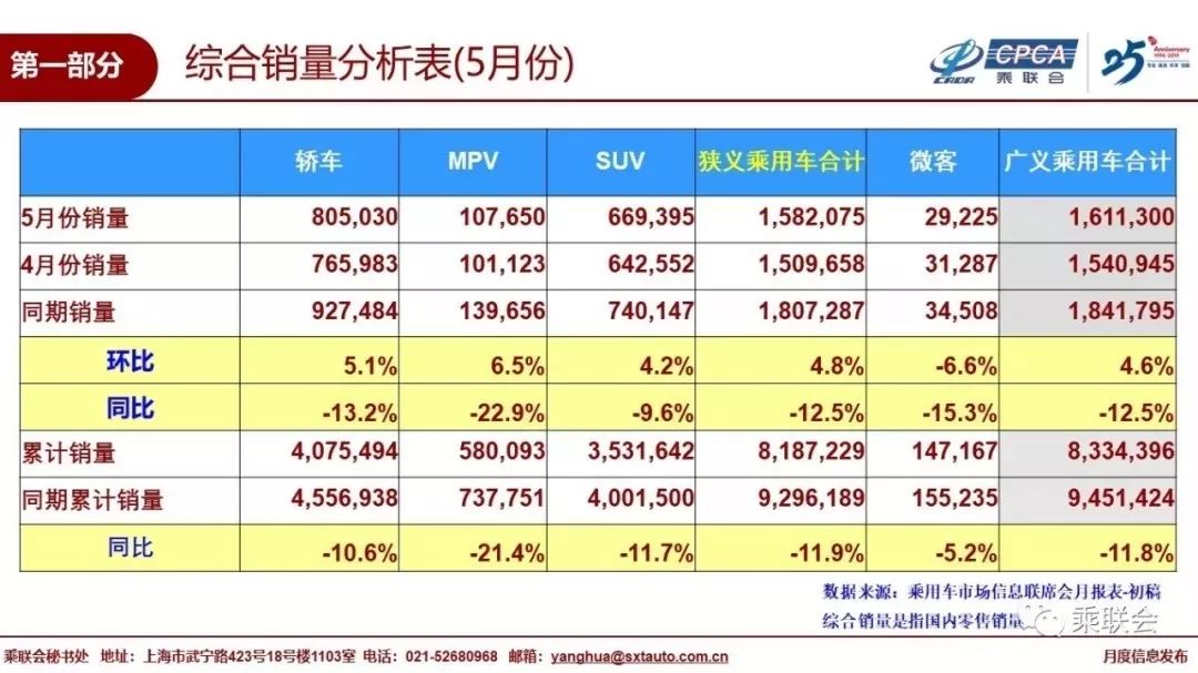 5月狭义乘用车零售158.2万台,同比下降12.5%,相对于今年1-4月累计同比-11.9%降幅基本持平,同比降幅较上月收窄。