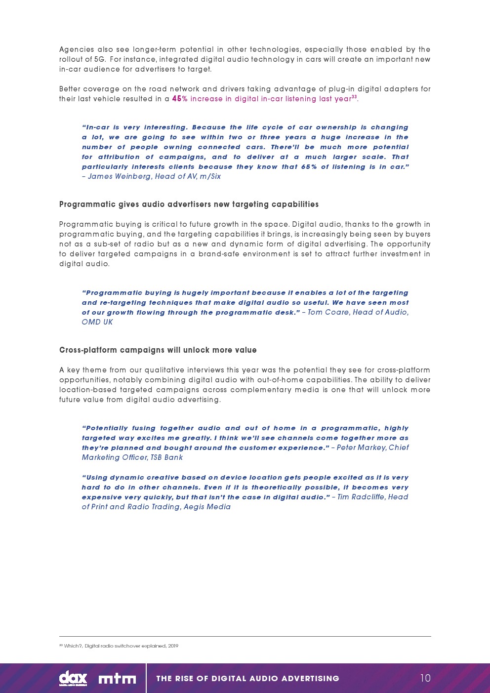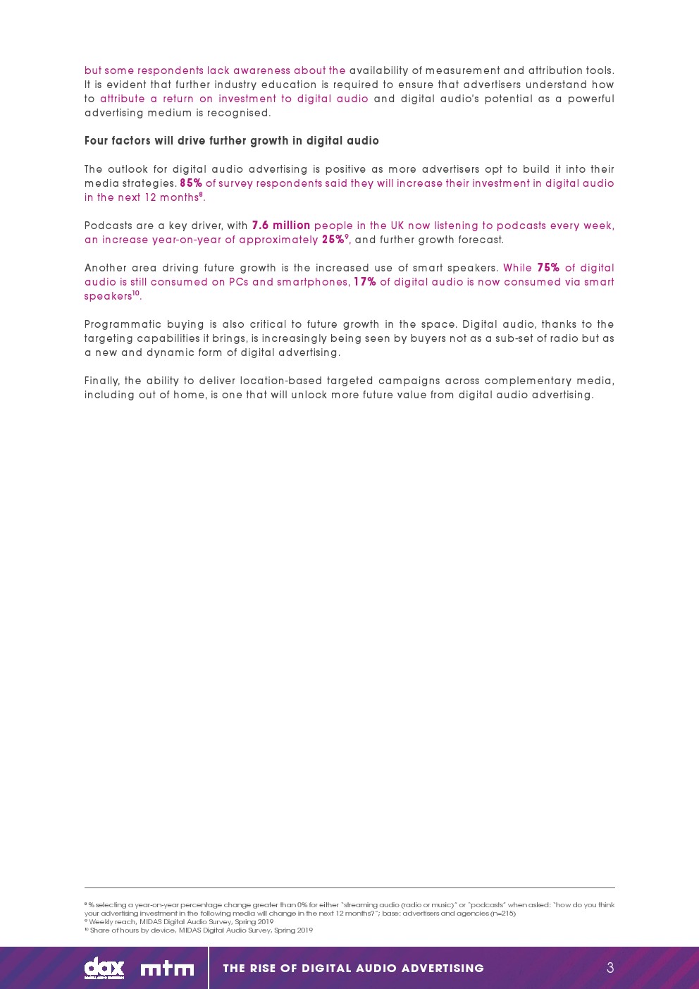 根据MTM的调查,过去一年,人们对数字音频广告的信心有所增长。86%的广告代理商和66%的广告客户将数字音频视为媒体战略的重要组成部分。