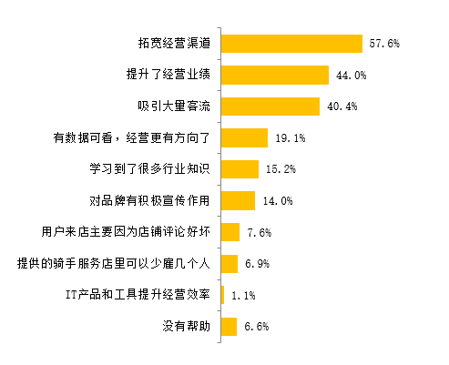 为全面、深入分析我国餐饮商户的发展特征以及餐饮商户在日常经营中面对的困难和挑战,2019年1季度,美团研究院依托美团平台对我国餐饮商户开展了问卷调查,发放2.1万份问卷,共获得15569份有效样本。问卷调查数据显示,在15569份有效样本中,77.1%的餐饮商户经营者认为所在品类的竞争“比较激烈”或“非常激烈”。尽管面对激烈的市场竞争,55.5%的餐饮商户经营者有扩张计划,其中计划扩张1-2家店的比例为44.9%,计划扩张3-5家店的比例为6.9%。数据分析结果显示,美团点评等互联网餐饮服务平台显著改善了我国餐饮商户的经营状况,有57.6%的餐饮商户认为美团点评等互联网餐饮服务平台帮助自己拓宽了经营渠道,有44%的餐饮商户认为美团点评等互联网餐饮服务平台帮助自己提升了经营业绩。问卷调查数据还显示,我国餐饮商户的传统痛点“三高”(房租水平高、原材料成本高、人力成本高)依然存在,对美团点评等互联网餐饮服务平台利用不够成为我国餐饮商户的新痛点。