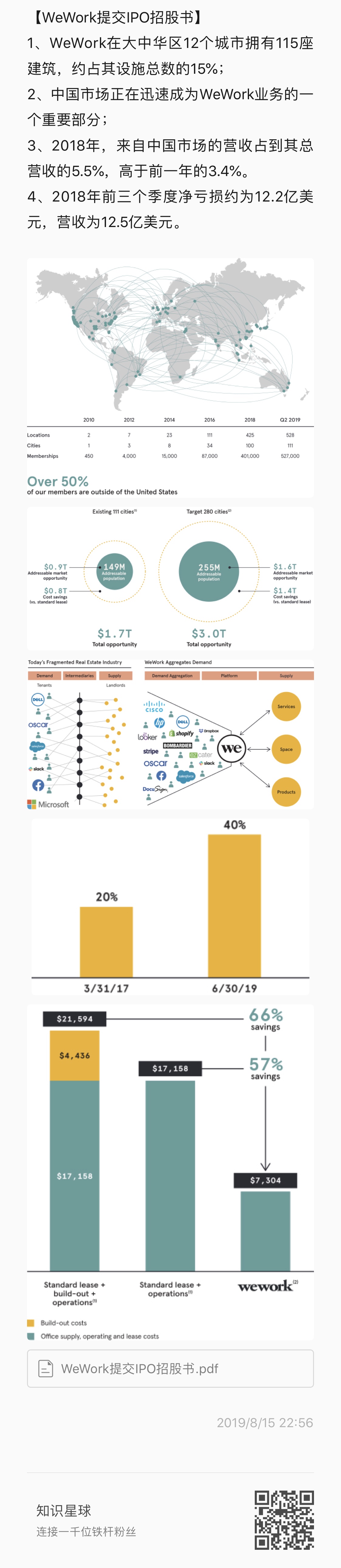 1、WeWork在大中华区12个城市拥有115座建筑,约占其设施总数的15%;