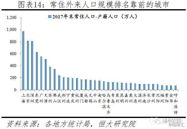 从户籍情况看,主要大城市外来人口众多、人口本地化空间很大,随着户籍制度改革深化推进有望释放部分住房需求。中央要求,除北京、上海少数超大城市外,其他城市均需放开放宽落户限制。当前常住人口与户籍人口之差大于500万人的有上海、北京、深圳、东莞、广州、天津6座城市,在200-500万人的有苏州、佛山、武汉、郑州、宁波5座城市,在100-200万人的有15座城市,50-100万人的有18座城市。上述44城或为直辖市、省会城市、计划单列市,或为长三角、珠三角、海峡西岸地区发达城市。近年在户籍制度改革和“抢人大战”的背景下,部分大城市户籍人口增长迅猛。2018年西安、成都、武汉、广州户籍人口分别较上年增加86.6、40.8、30.1、29.8万人,主要以户籍迁入的机械增长为主。
