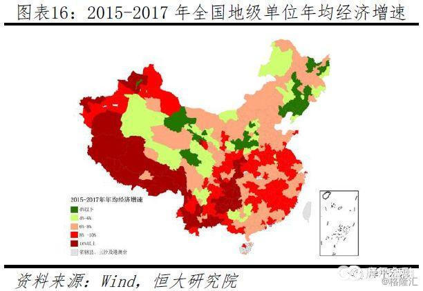 一二线城市以25.5%的人口创造了46.5%的GDP,人口集聚潜力很大。当前一线城市以5.2%的人口创造了全国12.3%的GDP,二线城市以20.3%的人口创造了34.1%的GDP,三线城市的人口份额与经济份额基本持平、分别为33.9%、34.0%,四线城市的人口份额明显低于经济份额、分别为39.7%、24.5%(因统计问题,地区GDP合计与全国存在差异)。从经济—人口比值来看,2017年一、二、三、四线城市分别为2.4、1.7、1.0、0.6;从剔除工业因素的第三产业-人口比值看,2017年一、二、三、四线城市分别为3.2、1.7、0.8、0.5。从经济增速看,2015-2017年,一线、二线、三线、四线城市年均经济增速分别为7.5%、7.9%、7.8%、6.8%,四线经济规模基数小、但增速仍然乏力。从区域看,近几年经济增速比较低的地区是辽宁、山西等数据挤水分地区及东北、西部等偏远地区,经济增速多在6%以下;而中部不少地区经济增速在8-10%之间,西南部分地区更是在10%以上。总体上看,未来人口将继续向大都市圈和区域中心城市集聚,三四线城市全域人口未来将继续大幅流出。