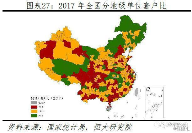 一二线城市住房供给偏紧、套户比分别为0.97、1.02,东北地区有过剩风险、套户比超过1.1。我们在2018年11月报告《中国住房存量测算:过剩还是短缺?》估算了2017年各省级、地级单位城镇住宅套户比。分地区看,2017年东部、中部、西部地区包括学生及其宿舍的城镇套户比分别为0.99、1.05、1.03,东北地区为1.13;东部、中部、西部地区不含学生及其宿舍的套户比分别为1.02、1.09、1.08,东北地区为1.17。分线看,2017年一线、二线、三四线城市套户比(含学生及其宿舍)分别为0.97、1.02、1.06,一二线城市住房供给偏紧。在全国336个地级单位(不含三沙)中,2017年有89个城市的套户比小于1,占比26.5%;有157个城市的套户比介于1.0-1.1之间,占比46.7%;有72个城市的套户比介于1.1-1.2之间,占比21.4%;有18个城市的套户比高于1.2,占比5.4%。