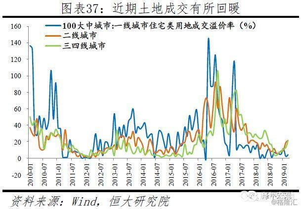 近期土地成交有所回暖。2018年百城样本中一线、二线、三四线城市住宅类用地成交溢价率分别为6.1%、12.5%、18.1%,均较2017年的21.9%、38.3%、45.3%明显下滑。不过,从最近半年数据看,土地成交有所回暖,2019年3月百城样本中一线、二线、三四线城市住宅类用地成交溢价率分别为4.2%、21.6%、21.4%,其中二线城市连续4个月上行、三四线城市连续5个月上行。