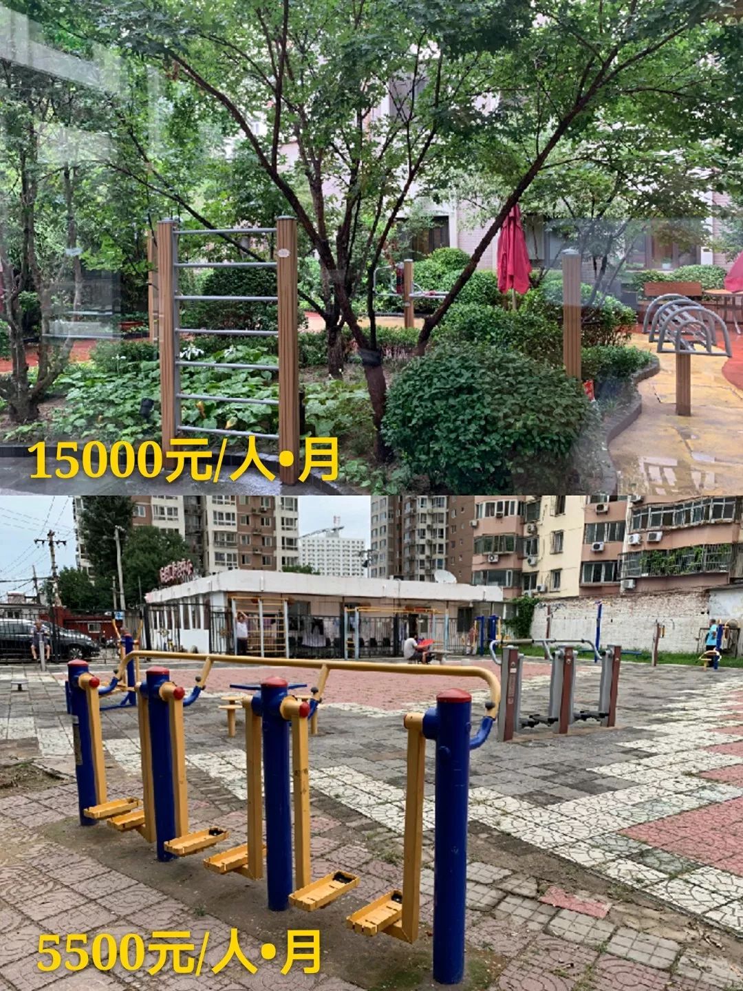 康复锻炼也是老年生活的重要一部分。高端长者公寓的室外锻炼空间,其实并没有中端老年公寓旁边的公共健身场所大,但后者并不属于养老院独有,而是跟公众共享。