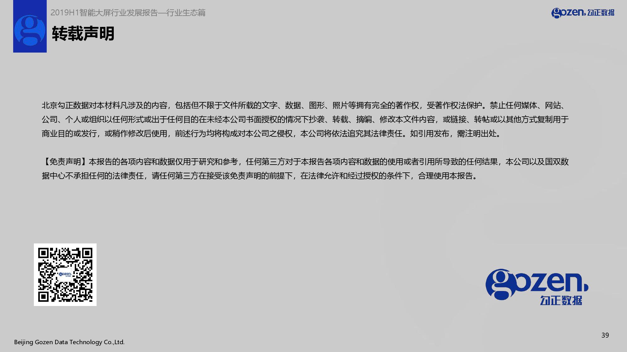 勾正数据:2019上半年家庭智能大屏产业生态报告 截止2019年上半年,智能电视家庭超2亿户,智能电视家庭渗透率达到36%,日活跃体量9553万户,近亿,并保持日均300分钟高度使用黏性,智能电视大屏营销价值高度体现。 同时,各品牌终端激活规模均保持持续增长,国产五大品牌激活量超1.2亿台,其次为国外品牌激活规模达3200万,互联网品牌将近2900万台。 PDF版本将分享到199IT交流群,支持我们发展可加入! 更多阅读:勾正数据:2019上半年家庭智能大屏产业生态报告勾正数据:2020上半年智慧屏行业发展白皮书勾正数据:2020年7月智能电视大数据报告勾正数据:2019年5月智能电视大数据报告勾正数据:2020智慧屏行业发展白皮书勾正数据:2017年上半年智能电视大数据报告勾正数据:2018年Q1大屏洞察报告勾正数据:2018年5月智能电视大数据报告勾正数据:2017年OTT行业发展报告勾正数据&当贝网络:2017年10月OTT行业报告勾正数据:2017年8月智能电视大数据报告勾正数据:2020年8月智能电视大数据月度报告勾正数据:2019年4月智能电视大数据报告勾正数据:2019年8月5-11日智能电视大数据周报2016上半年度中国物联网产业生态报告