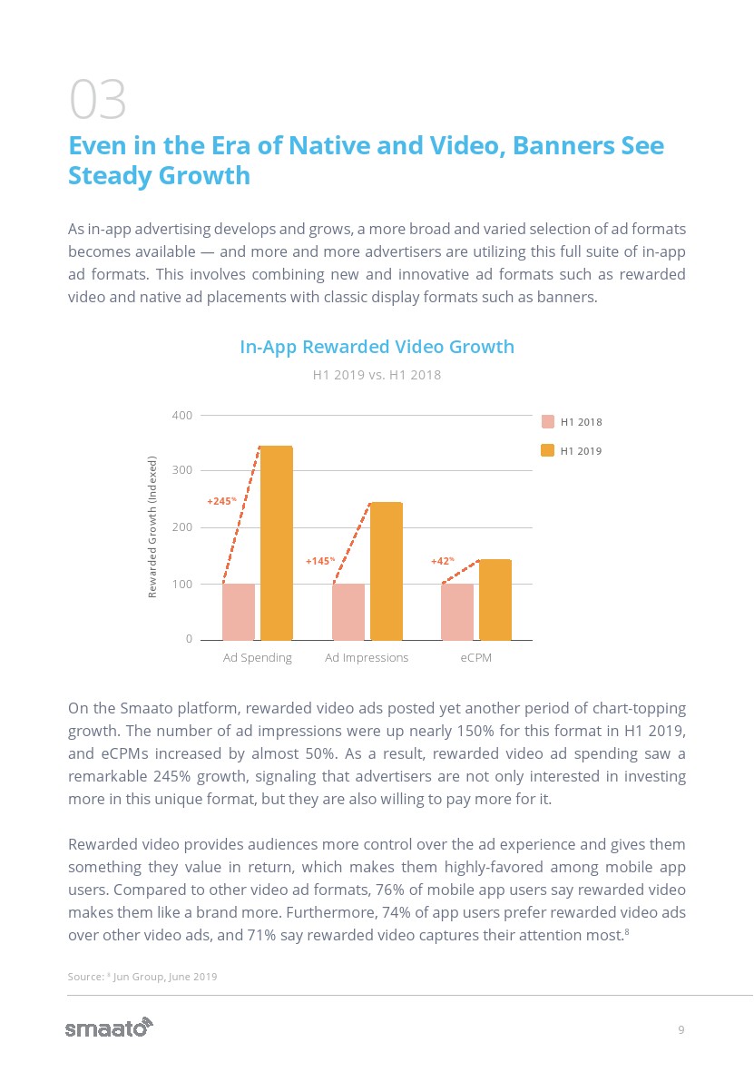 根据Smaato对2019年上半年全球应用内广告趋势的调查:
