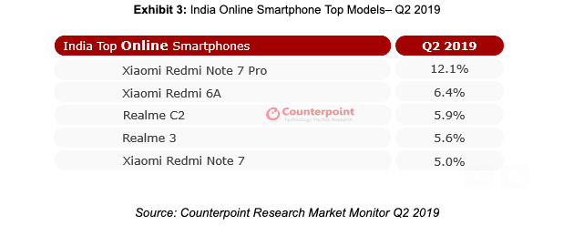 小米Redmi Note 7 Pro,Realme C2和Realme 3是Flipkart在2019年第二季度同比增长45%的原因。帮助Flipkart达到统治地位的主要品牌是小米,Realme,华硕和三星。