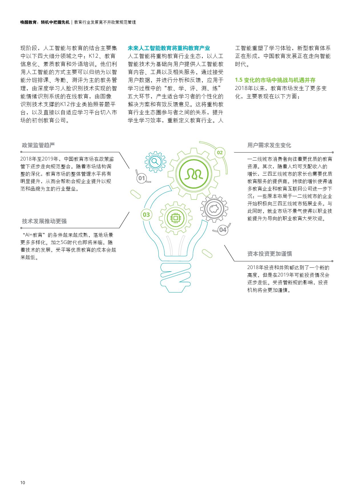 - 我国教育政策调整,将深入影响学前教育、K12教育、职业教育等细分行业。市场变化背景下,教育企业也将面临更多挑战和发展机会。