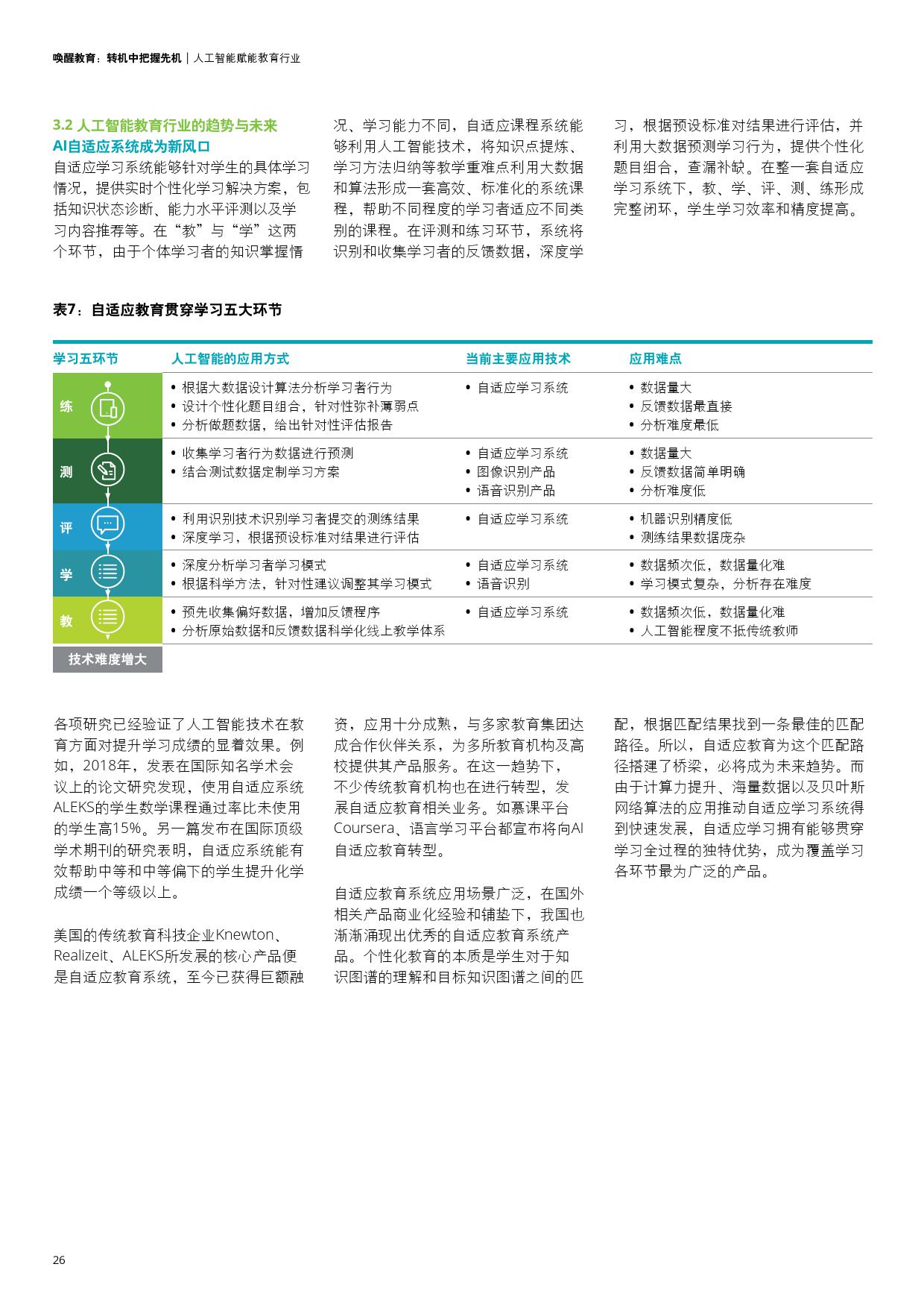 - 全球涉足自适应教育的企业数量不断上升,国内人工智能赋能教育行业潜在盈利空间巨大。然而,国内自适应学习技术仍处在初步发展阶段,AI+教育发展还需传统教育行业、政策、技术等的多方面助力。