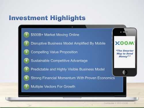 Xoom路演PPT概括该公司的投资亮点包括: