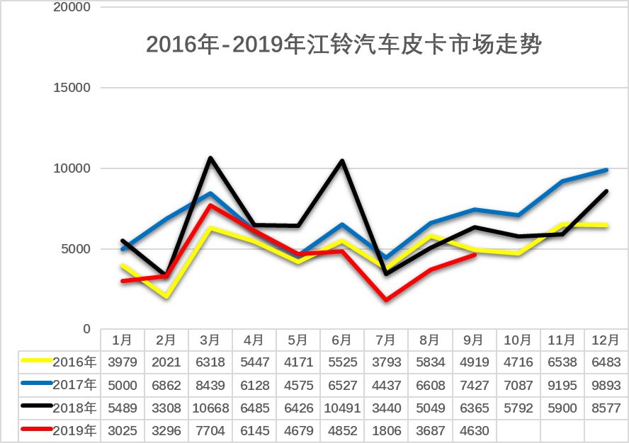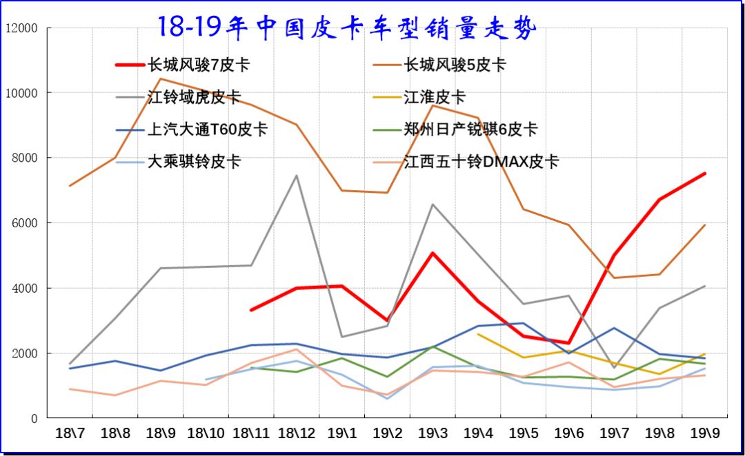 根据中国汽车流通协会市场研究分会(乘联会)数据,在2018年中国皮卡市场同比增长10%的高增长基础上,2019年皮卡市场1-9月份累计销量31万台,累计同比增长-3%。