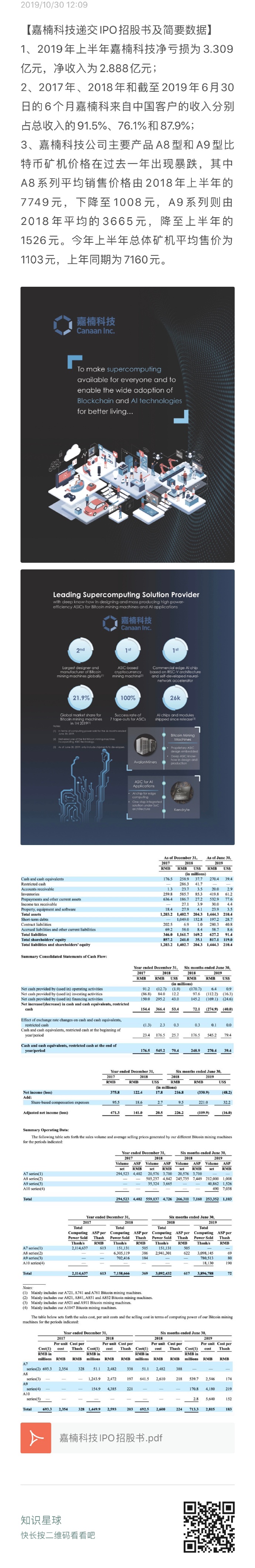 嘉楠科技IPO招股书及简要数据 招投书下载地址:https://t.zsxq.com/iEU3zvf 更多阅读:消费者品牌报告:寻找真相网易云音乐上市IPO招股书及简要数据蛋壳公寓IPO招股书及简要数据滴滴上市IPO招股书及简要数据 奈雪的茶IPO上市招股书及简要数据涂鸦智能上市IPO招股书及简要数据中国人民银行:2019年第一季度城镇储户问卷调查报告蓝洞财报:2022年Q1蓝洞PC销售额达到8230万美元 同比增长61%奈雪的茶IPO招股说明书及简要数据腾讯财报:2017年第三季度腾讯总收入652.1亿元 同比增长61% (附季报下载)2019财年亚马逊第四季度及全年财报–PPT版微软财报:2020财年第一季度微软营收达到331亿美元蚂蚁集团上市招股书及简要数据Arm财报:2021财年Arm收入为27亿美元 同比增长35%图森未来财报:2021年Q4图森未来营收205.0万美元 同比增长178%