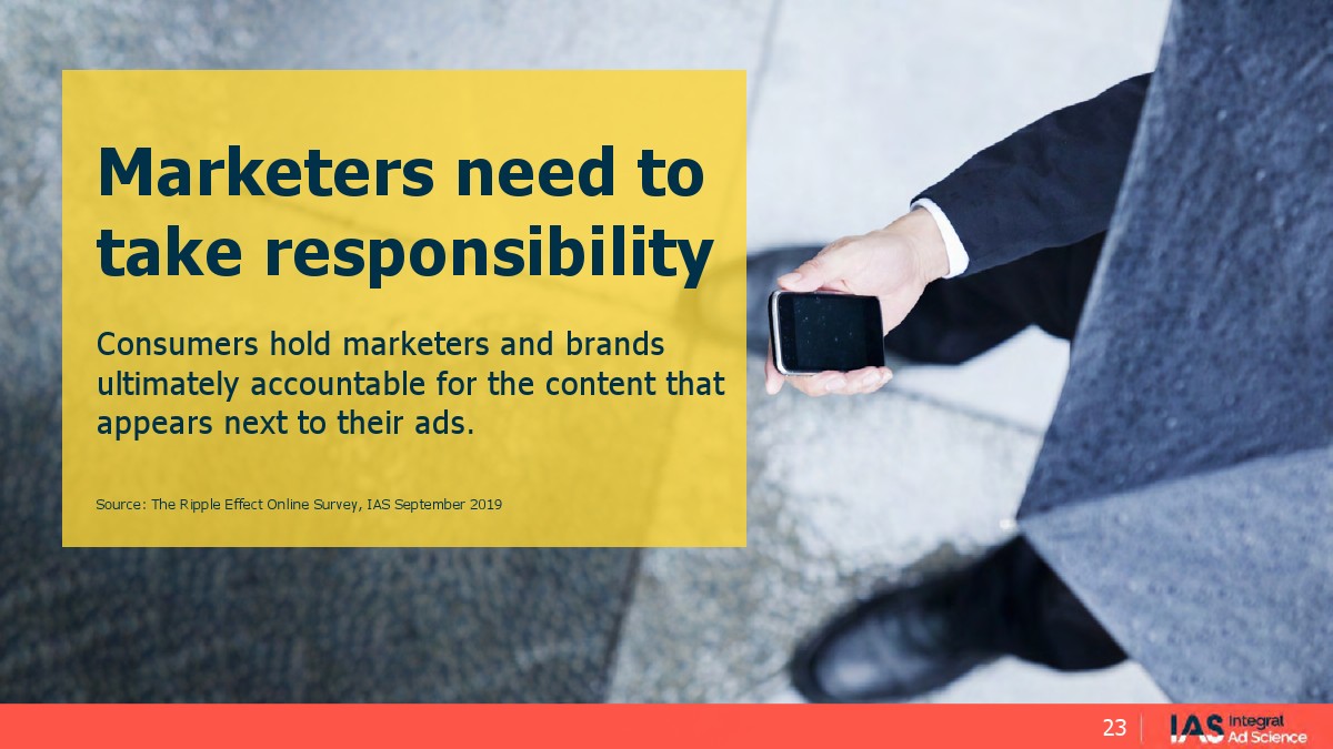 只有37%的美国品牌和营销人员认为他们对品牌安全负有责任。相比之下,63%的美国消费者认为品牌对其广告旁边出现的内容负责。从全球角度来看,在印度尼西亚和法国等国,这种差距更大,超过70%的消费者认为品牌应对相邻内容负责。