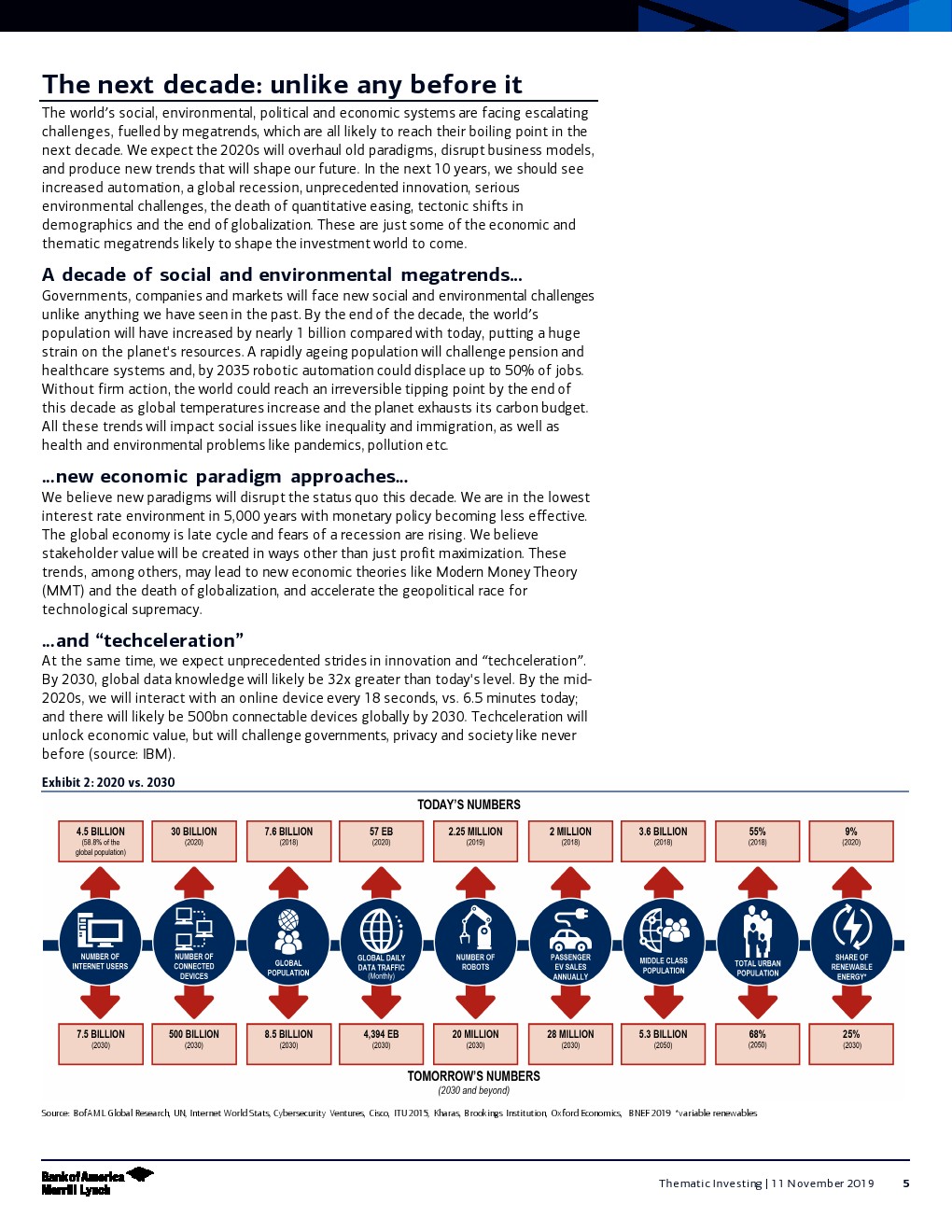 美国银行发布了新报告“21世纪20年代改变世界的十大趋势”。