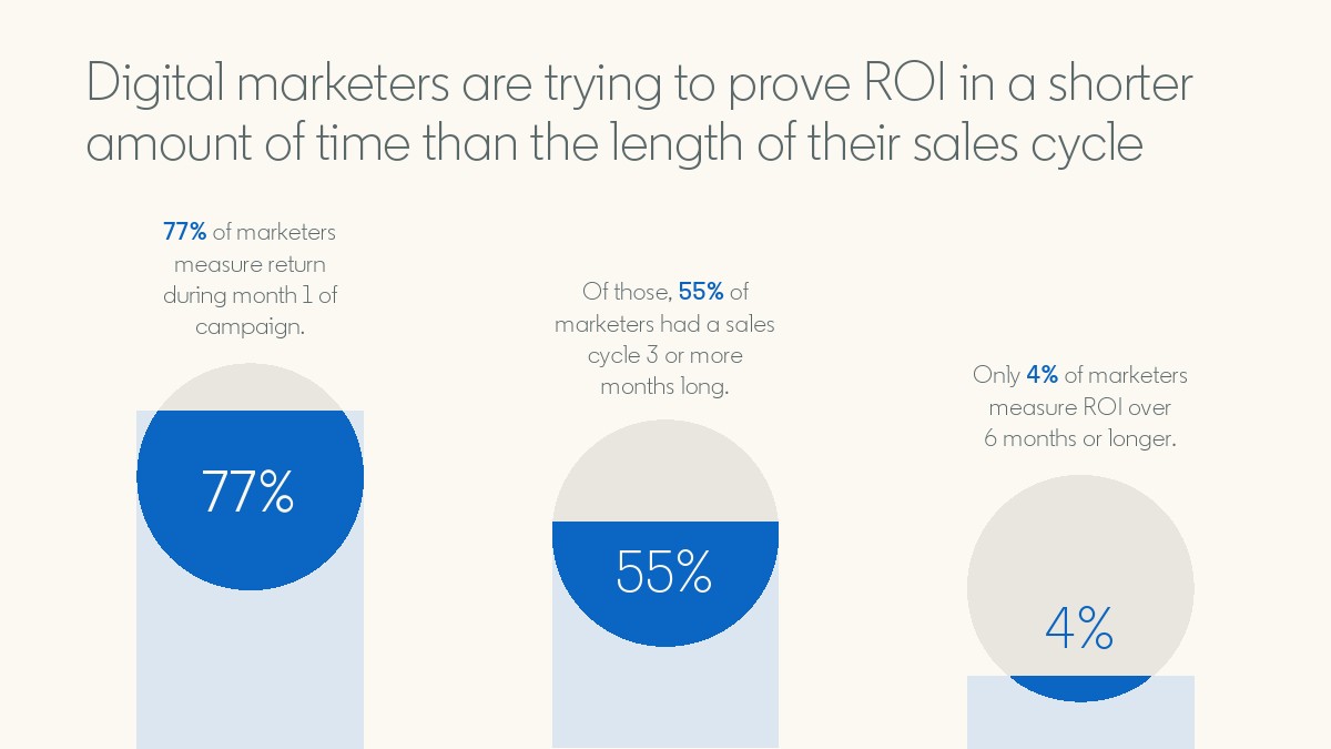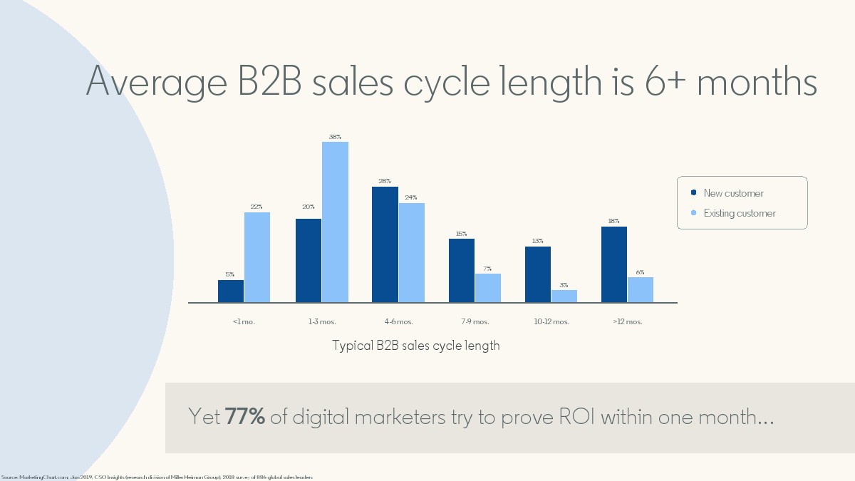 事实上,B2B销售周期通常平均需要6个月或更长。但是只有4%的B2B受访者在这个时间范围内测量ROI。