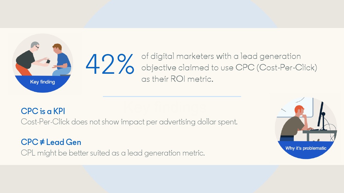 营销人员可能正在使用像CPC和CTR这样的短期指标来代替ROI。