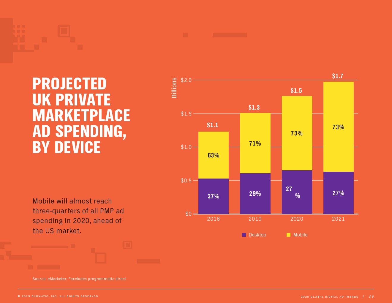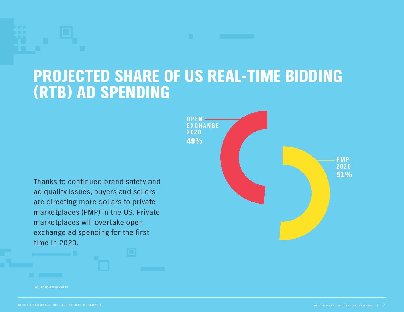 由于品牌安全和广告质量问题持续存在,买家和卖家正将更多支出投向私人市场(PMP)。私人市场将在2020年首次超过公开交易广告支出。