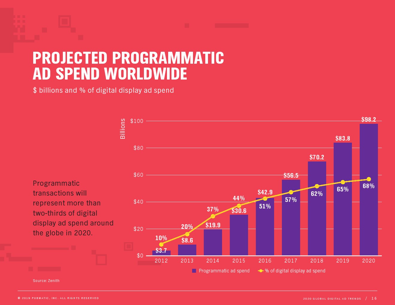 到2020年,全球广告程序化购买将占网络广告支出的2/3,并将达到近1000亿美元。