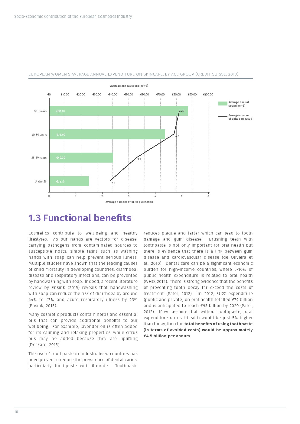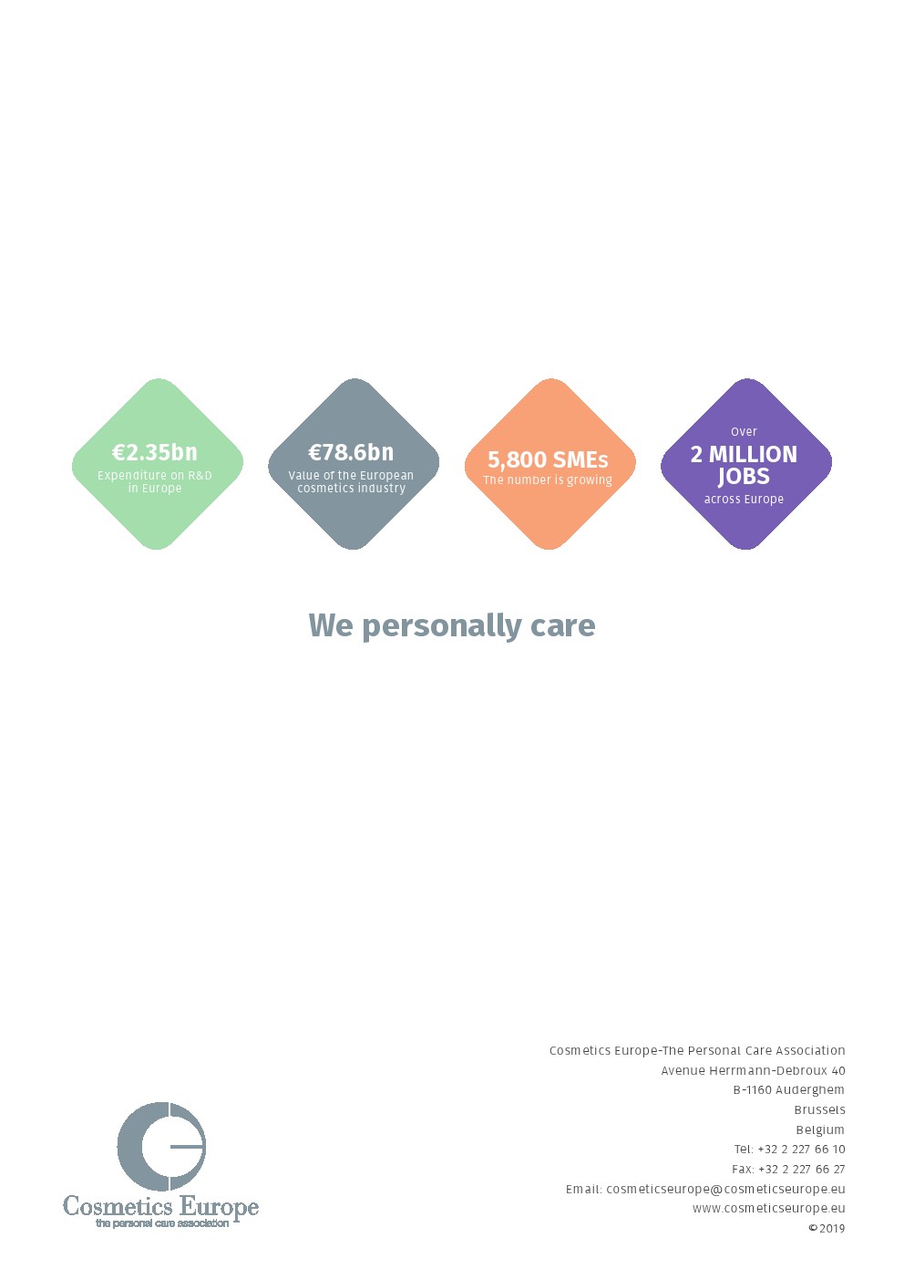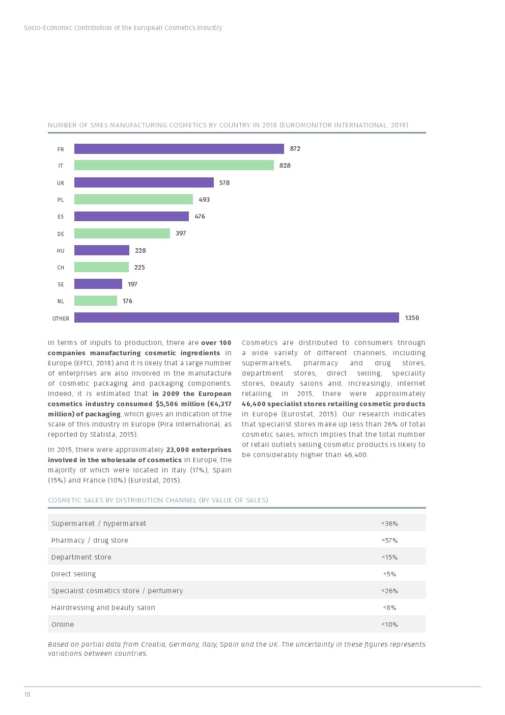 该行业通过其价值链为欧洲经济做出了重大贡献。据估计,化妆品行业每年至少为欧洲经济带来290亿欧元的附加值,其中约110亿欧元来自化妆品制造的直接贡献,剩余的180亿欧元是通过供应链间接产生的。