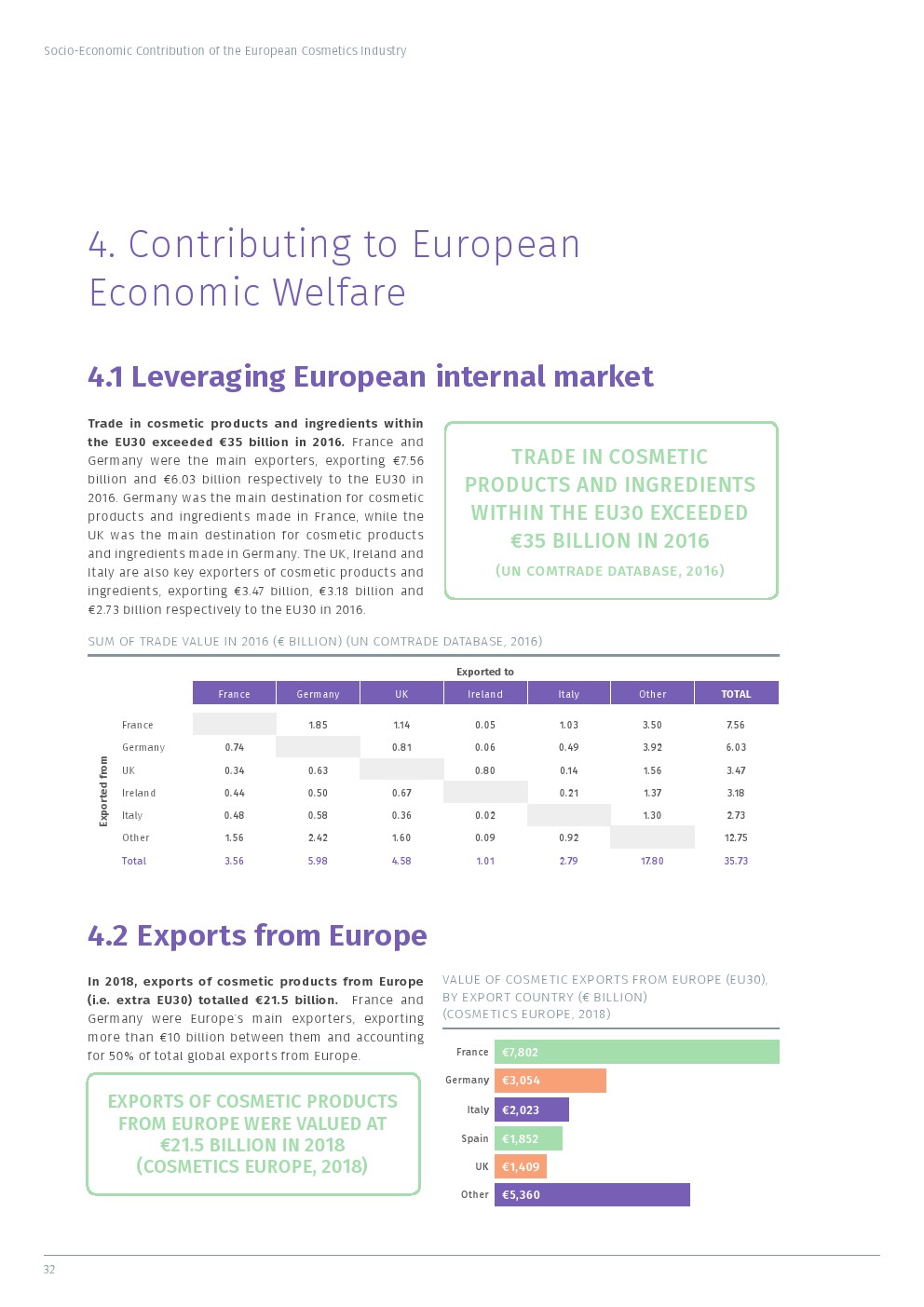 欧洲是全球化妆品的主要生产国。2018年,欧洲化妆品市场估值786亿欧元,使欧洲成为全球最大的化妆品市场。贸易是该行业的重要组成部分,化妆品和配料的贸易额超过350亿欧元。2018年,欧洲出口了价值约215亿欧元的化妆品。
