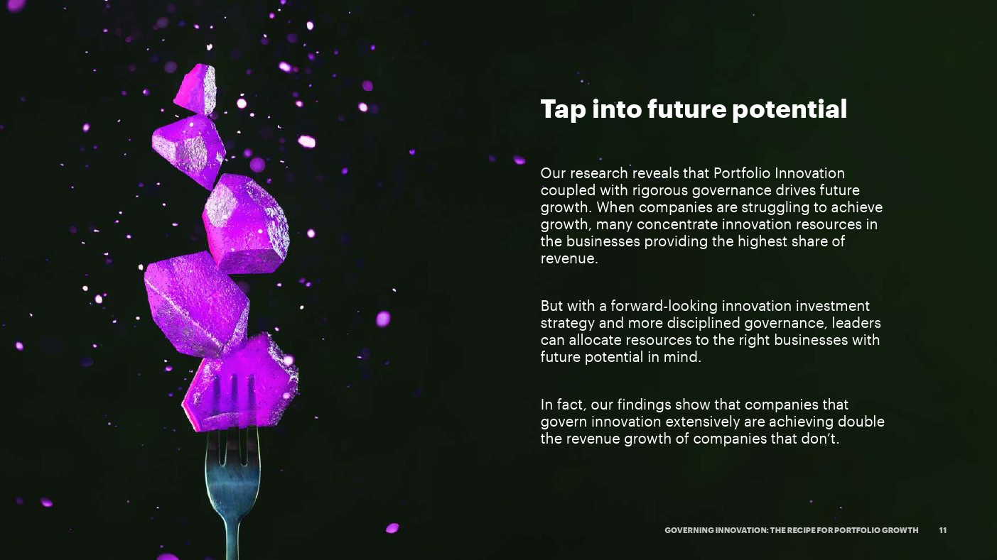 报告的一个关键发现是,只有12%的公司广泛地控制创新,并且这些公司在2013-2018年期间的复合年均增长率(CAGR)为5.9%,而相比之下,88%的公司更随意地管理创新,其复合年均增长率仅为2.9%。