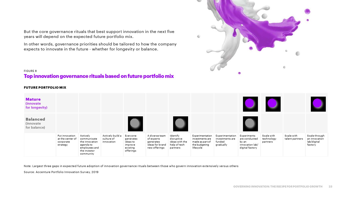 该报告利用了埃森哲的投资组合创新模型,考察了三种成熟度(增量、突破性和破坏性)在所有水平(传统、增长和新兴)上的应用。