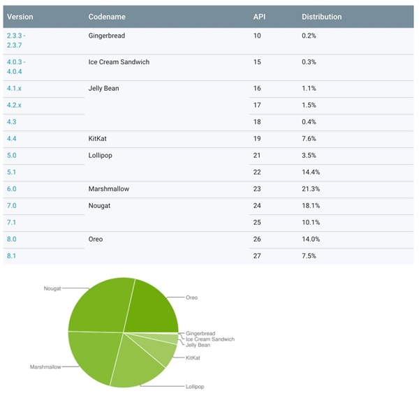 2018年10月份谷歌安卓系统数据:3个月9.0系统占比仍不足0.1%