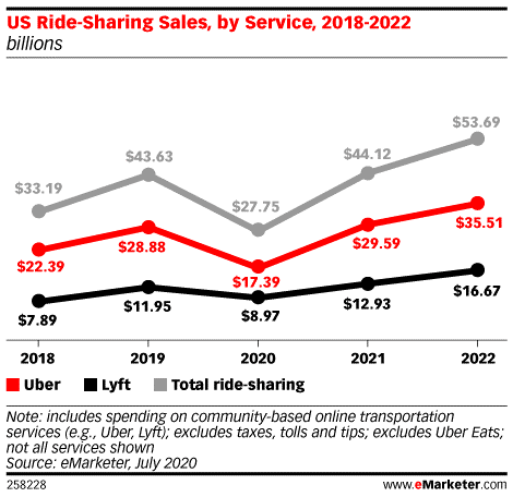 eMarketer:2020年Uber美国共享汽车销售额下降近40%
