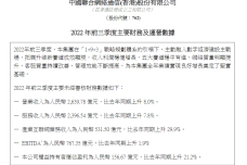 中国联通财报:2022年前三季度中国联通营业收入为人民币 2639.78 亿元 同比增长 8.0%